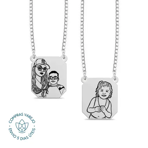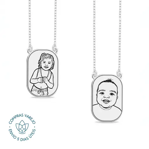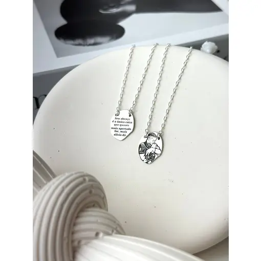 Escapulário de Prata Personalizável Retangular Escrita e Desenho