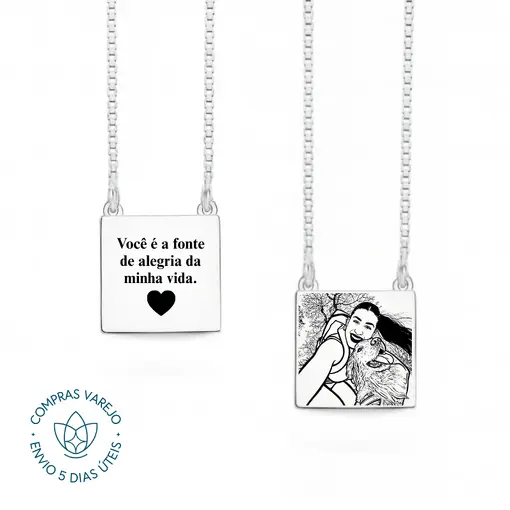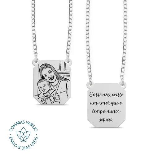 Escapulário de Prata Personalizável Retangular Foto e Escrita