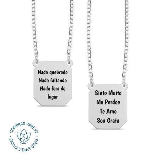 Escapulário de Prata Personalizável Retangular Escrita