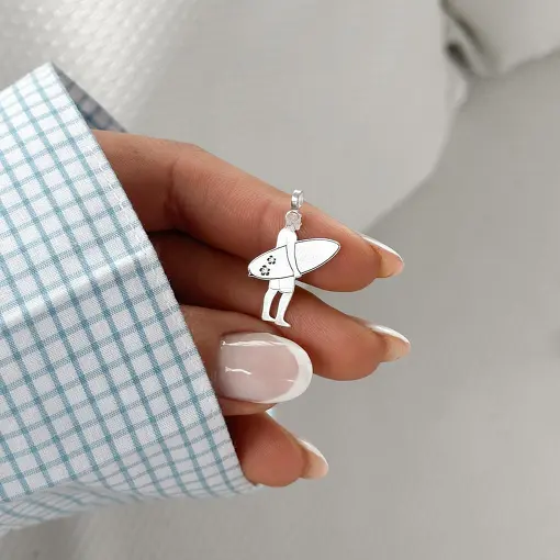 Pingente de Prata Menino Surfista