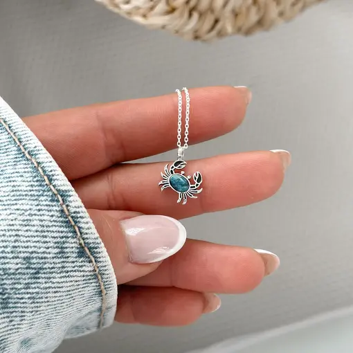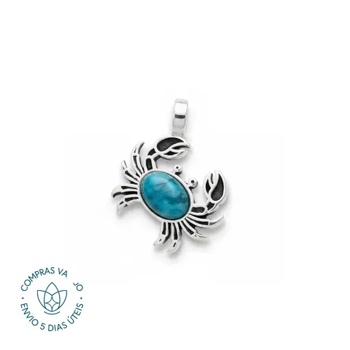 Pingente de Prata Medalha Abstrata Tartaruga e Apatita Azul Oval