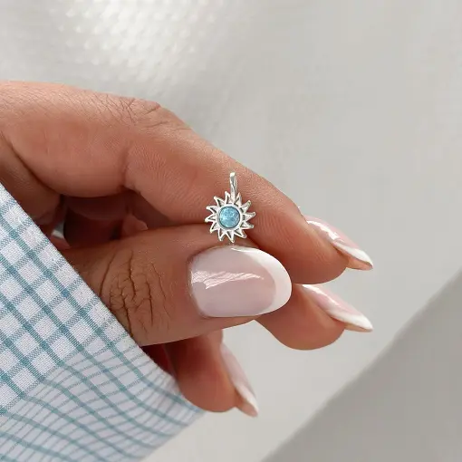 Pingente de Prata Sol e Pedra Natural