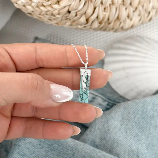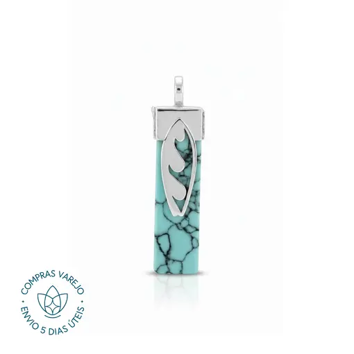Pingente de Prata Caixa Prancha e Pedra Turquesa