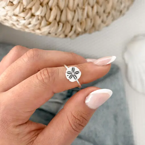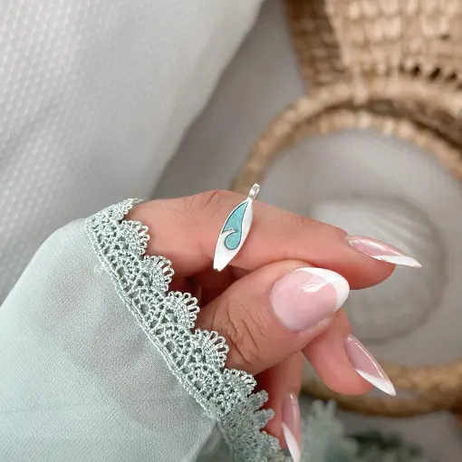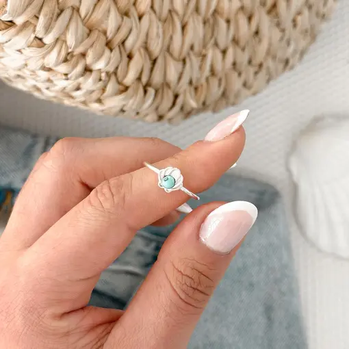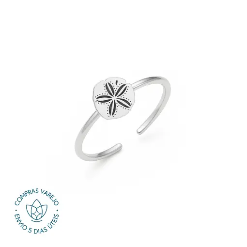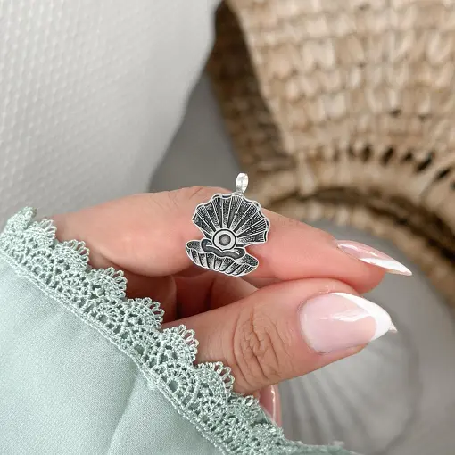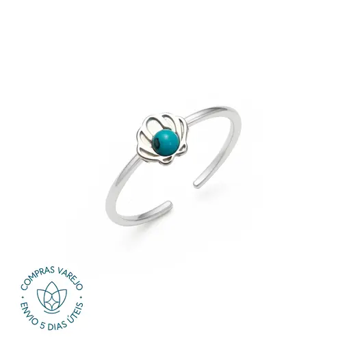 Anel de Prata Concha e Pedra Natural Regulável