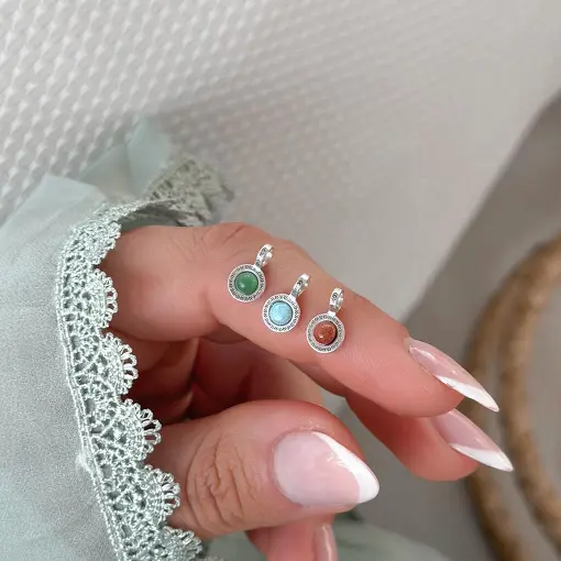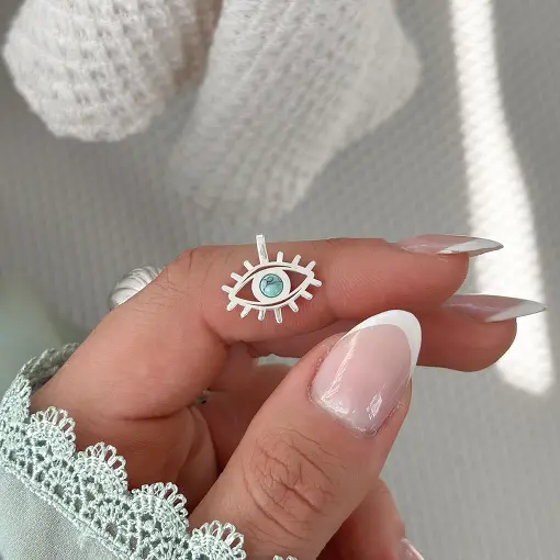 Pingente de Prata Olho Grego e Pedra Natural