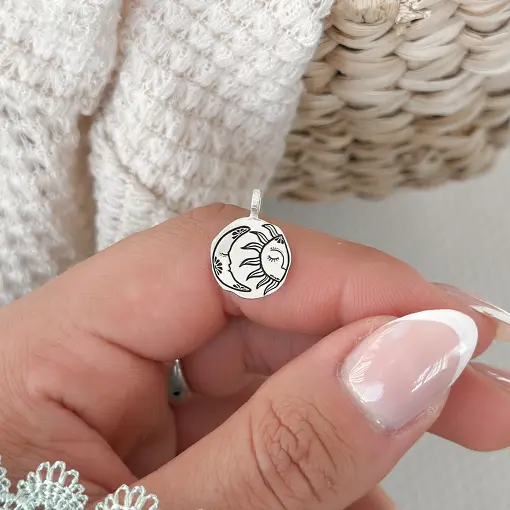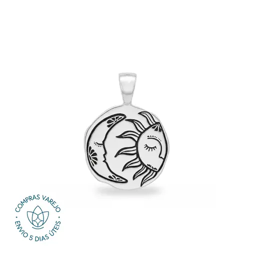 Pingente de Prata Medalha Abstrata Lua e Sol