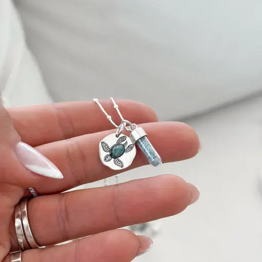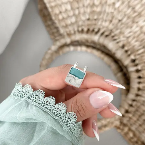 Pingente de Prata Caixa Praia Resinado