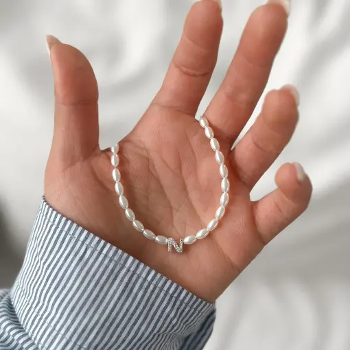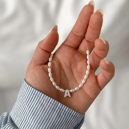 Colar Nylon Pérola e Inicial Madrepérola
