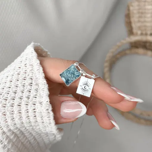 Pingente de Prata Caixa Olho Grego e Pedra Natural