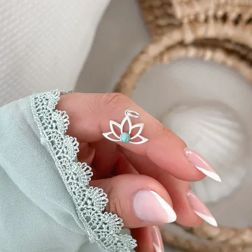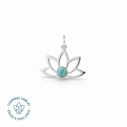 Pingente De Prata Flor De Lotus Vazado e Pedra Natural