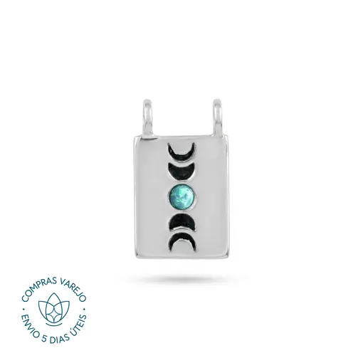 Pingente de Prata Retangular Fases da Lua e Pedra Natural Opala