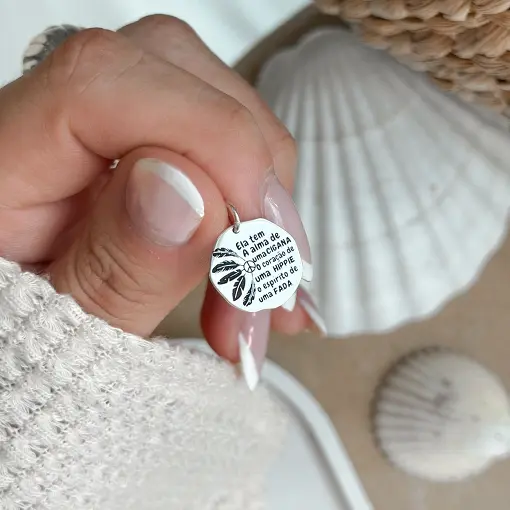Pingente de Prata Medalha Abstrata Ela Tem A Alma