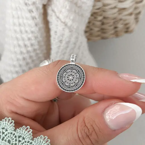 Pingente de Prata Medalha Mandala