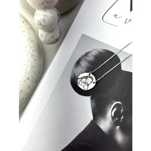 Colar de Prata Personalizável Redondo Abstrato Foto