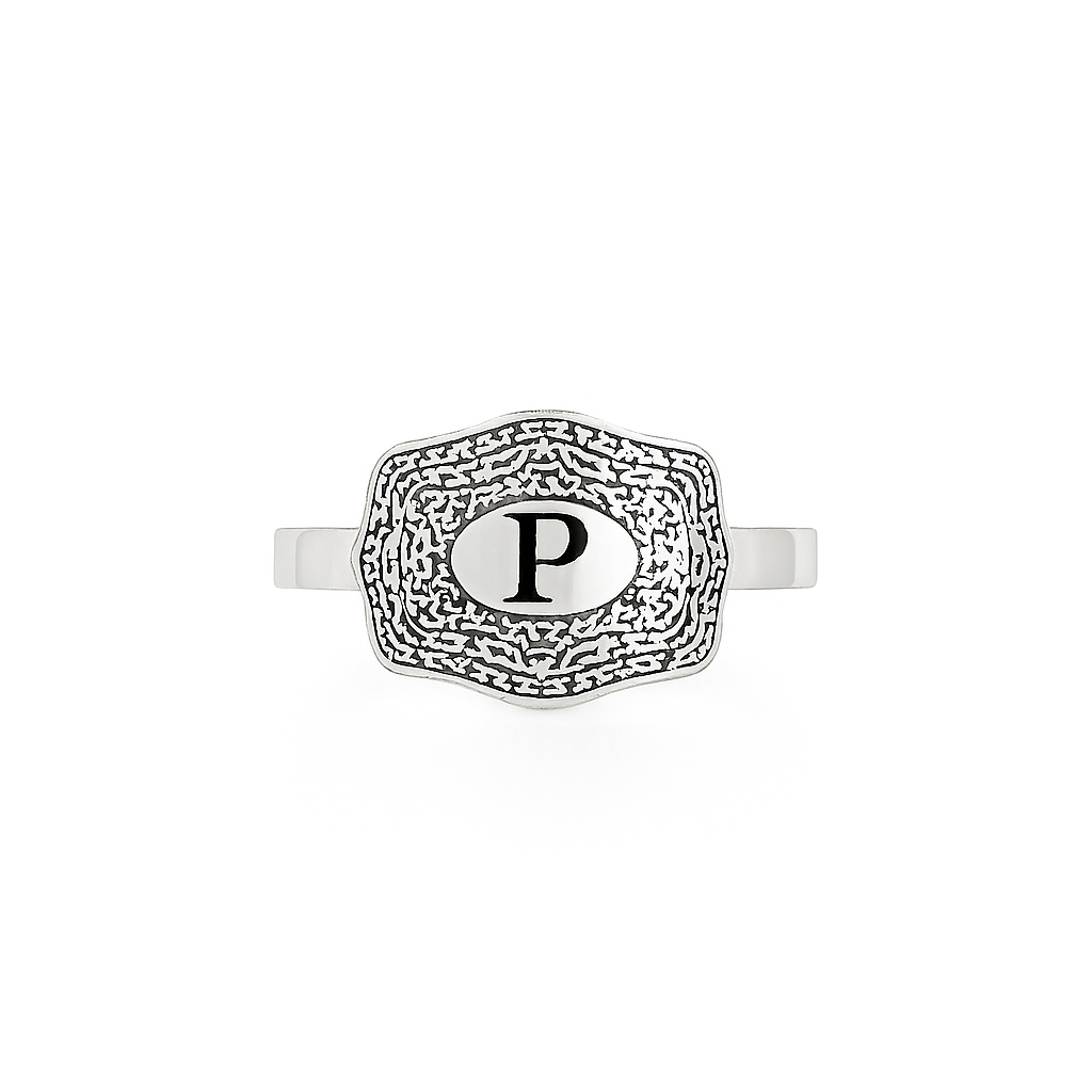 Anel de Prata Personalizável Fivela Inicial – Seu nome, sua força, sua história