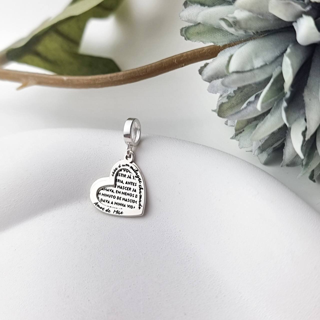 Berloque de Prata confeccionado em Tamanho: 10mm altura X 10mm largura A garantia é referente a autenticidade da prata, não cobrimos quebra ou danos por uso "antes de você existir eu já te queria, antes de você nascer eu já te amava, em menos de um minuto de nascido já dava minha vida por você"
