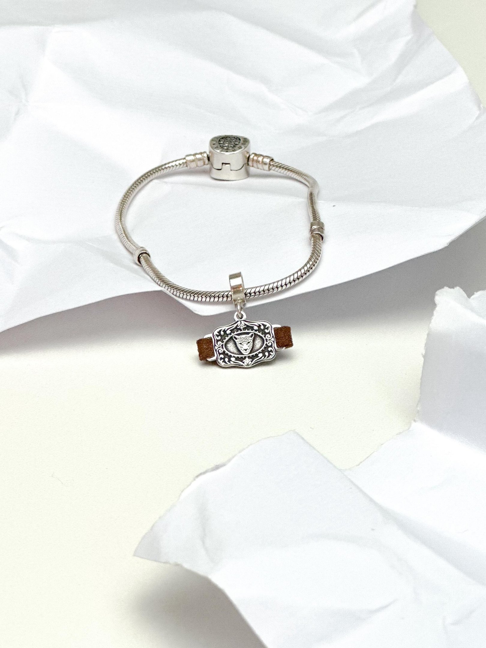 O Berloque de Prata Fivela Cinto Onça é uma peça marcante e sofisticada, que une a força do símbolo da onça com o estilo country característico do design de fivela. Confeccionado em prata 925, ele traz a mistura perfeita entre autenticidade e personalidade, com o detalhe da camurça que imita o cinto, disponível em diversas cores.