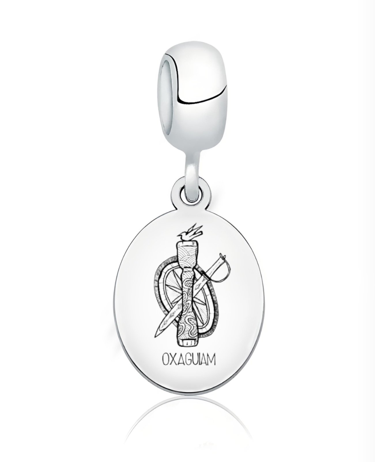 O Berloque de Prata Oxaguiam Oval em representa o orixá guerreiro e vitorioso, Oxaguiam. Com um formato oval e delicado, essa peça simboliza a coragem, força e liderança, sendo ideal para quem deseja carregar consigo a proteção e o poder de um guerreiro espiritual. Perfeito para adornar sua Pulseira de Prata com um toque de fé e determinação.