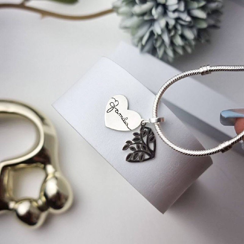 3. Berloque de Prata Patuá Coração Família Árvore da Vida