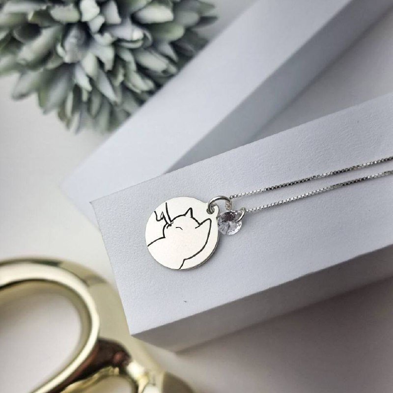 Colar de Prata Patuá Medalha Focinho Gatinho e Zircônia
