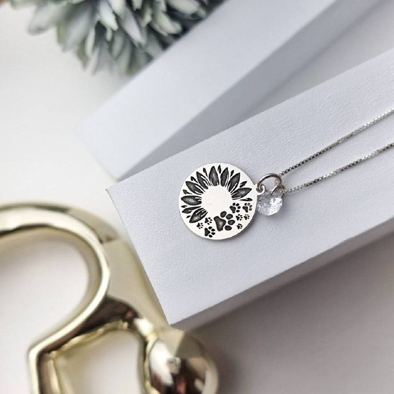 3. Colar de Prata Patuá Medalha Girassol Patinha e Zircônia