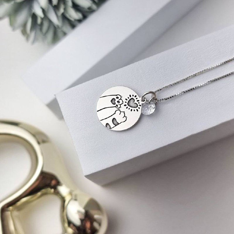 3. Colar de Prata Patuá Medalha Patinha Coração e Zircônia