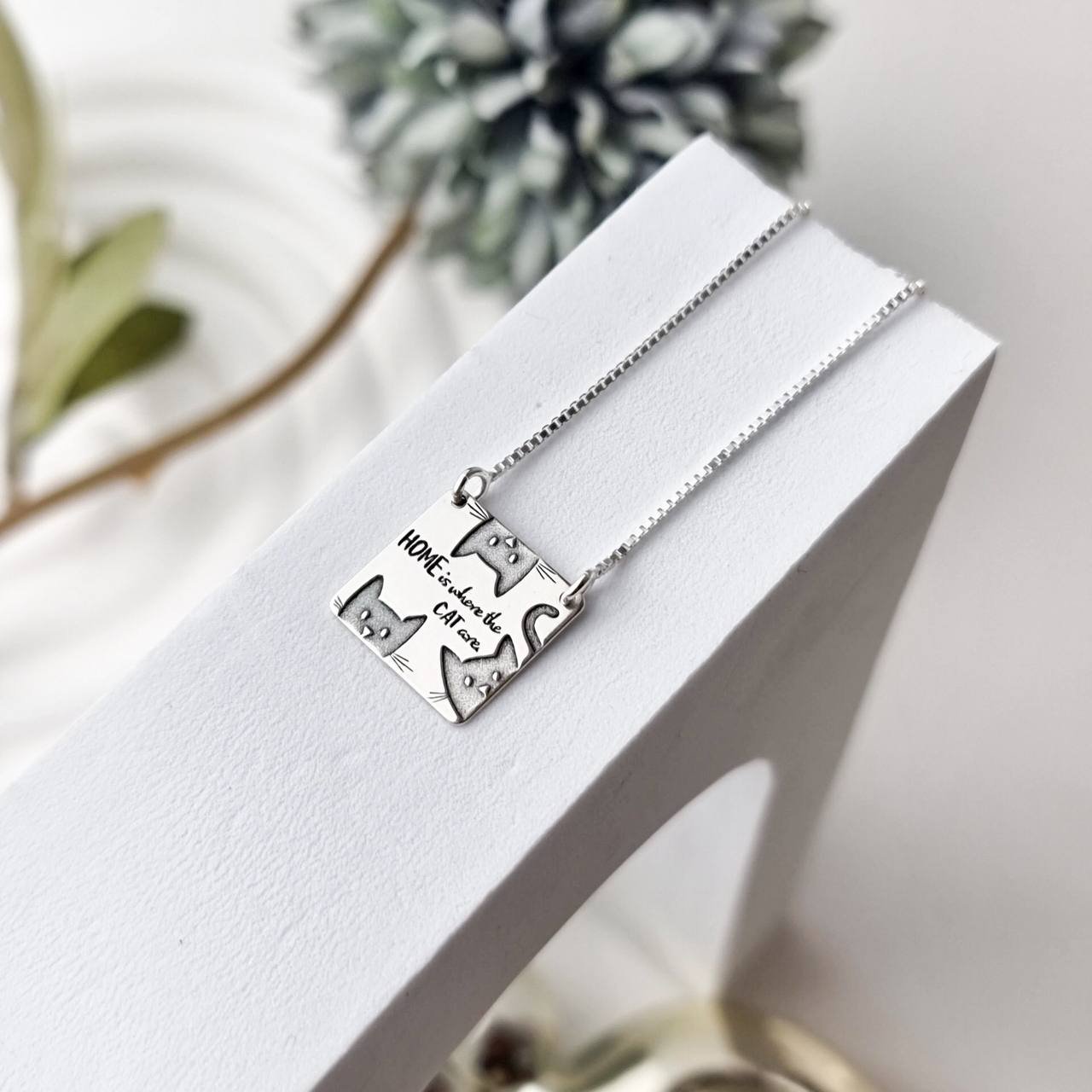Colar de Prata confeccionado em Tamanho: V15 - 45 cm / Pingente de Prata: 13mm A garantia é referente a autenticidade da prata, não cobrimos quebra ou danos por uso. "home is where the cat are = casa é onde o gato está"