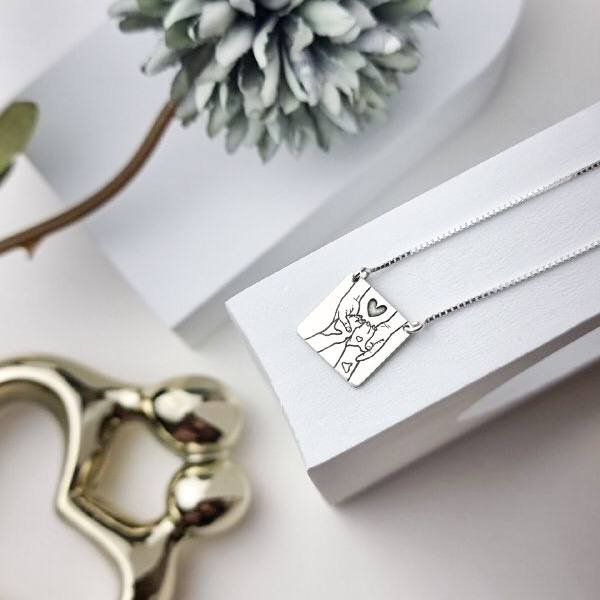 Colar de Prata Quadrado Mãos e Patinhas Dadas