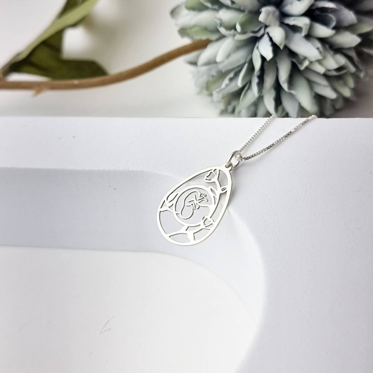 Colar de Prata confeccionado em Tamanho: V12 - 45 cm / Pingente de Prata: 22mm x 16mm A garantia é referente a autenticidade da prata, não cobrimos quebra ou danos por uso.