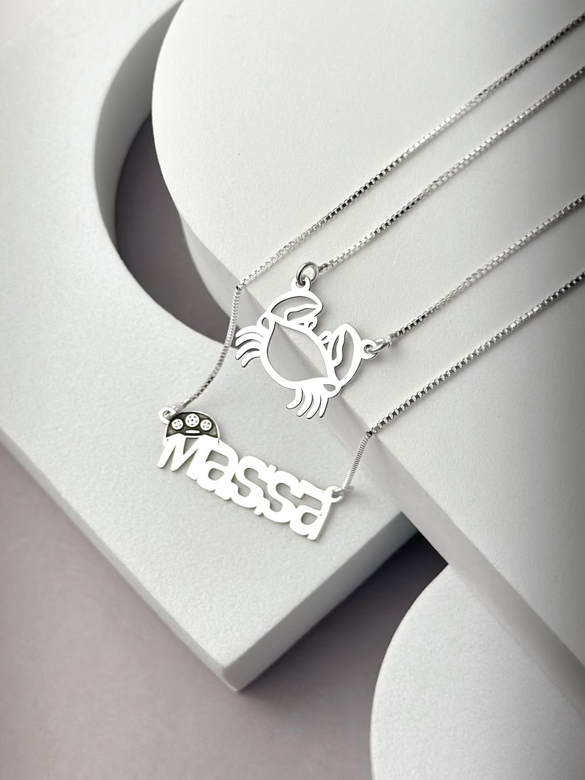 O Escapulário de Prata Massa e Caranguejo é uma peça irresistível que homenageia a rica gastronomia nordestina. Com pendentes que representam a expressão "massa" e o icônico caranguejo, este Escapulário de Prata combina tradição e charme de forma perfeita. É ideal para quem deseja adicionar um toque autêntico e divertido ao seu visual.