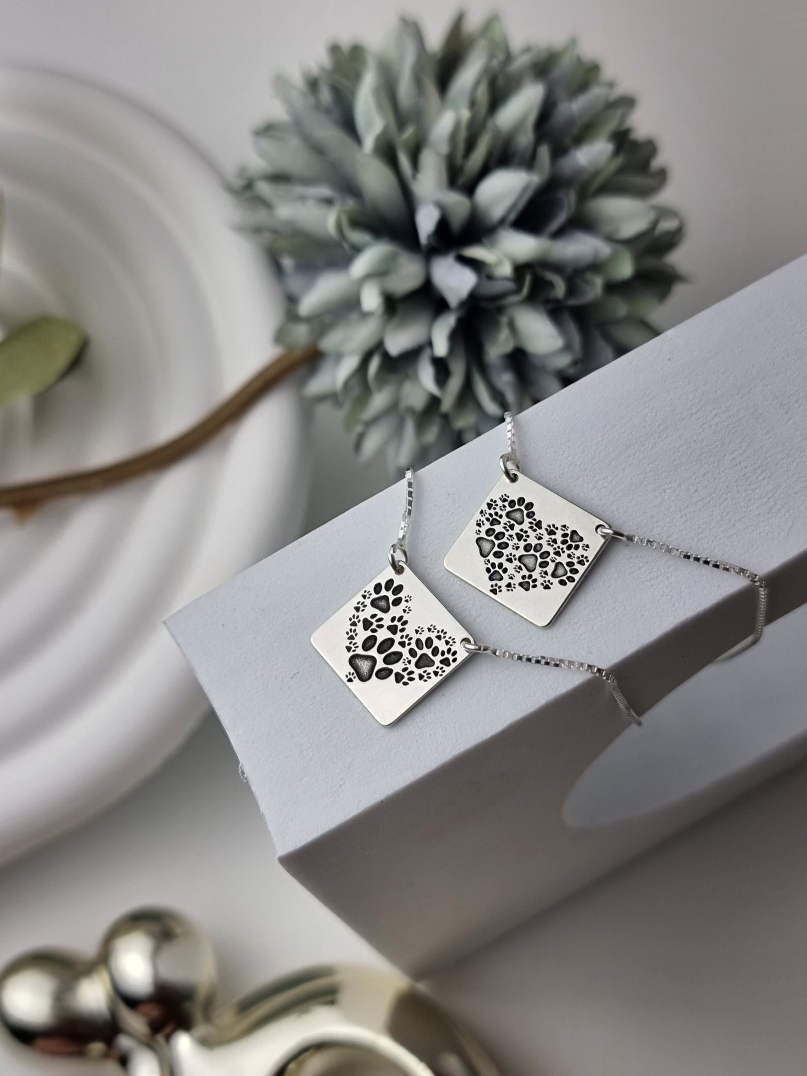 Escapulário de Prata Quadrado Coração Patinhas