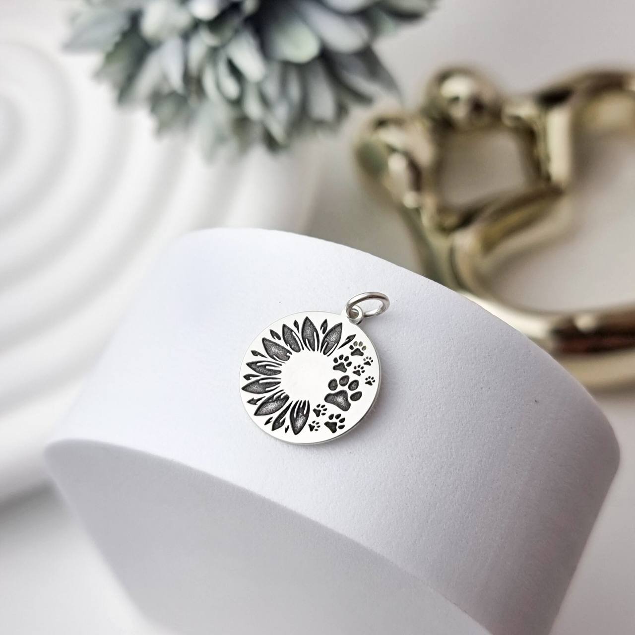 3. Pingente de Prata Medalha Girassol e Patinhas