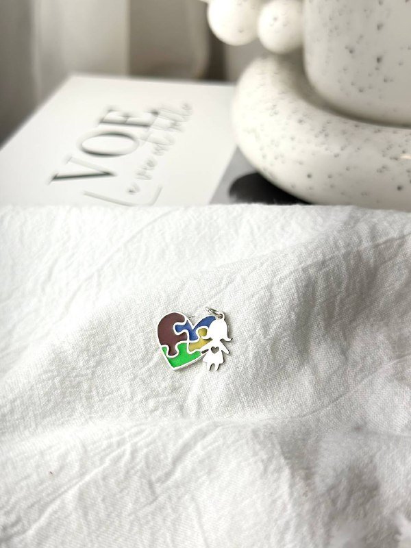 O Pingente de Prata Patuá Coração Autismo Menina Resinado é uma joia cheia de significado e amor. O coração, em formato de quebra-cabeça e resinado nas cores azul, amarelo, vermelho e verde, simboliza o autismo e a beleza da diversidade. Acompanha ainda um segundo pingente em formato de menina, tornando a peça ainda mais afetiva e especial.
