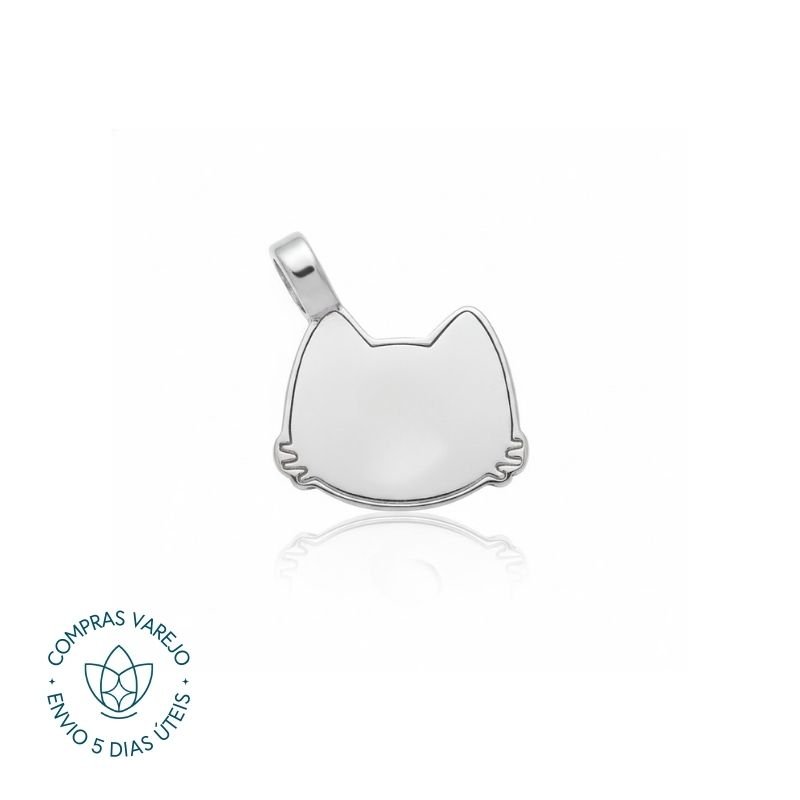 Pingente de Prata Patuá Gato Liso Com Contra Argola