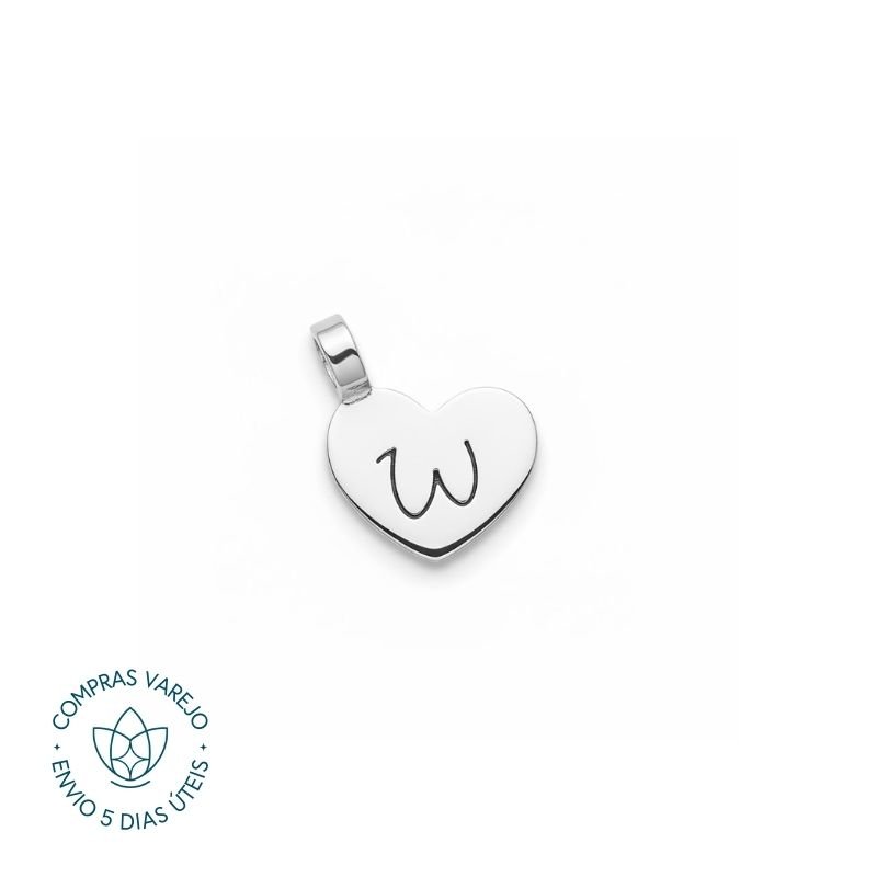 Pingente de Prata Personalizável Patuá Coração com Contra Argola