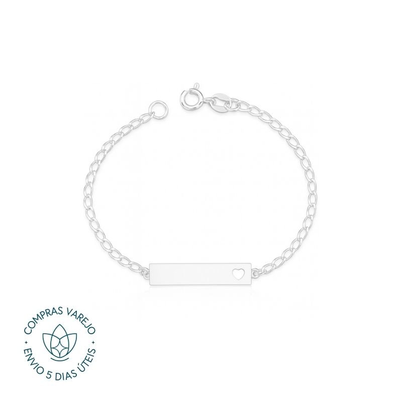 Pulseira de Prata Personalizável Infantil Placa Coração Vazado